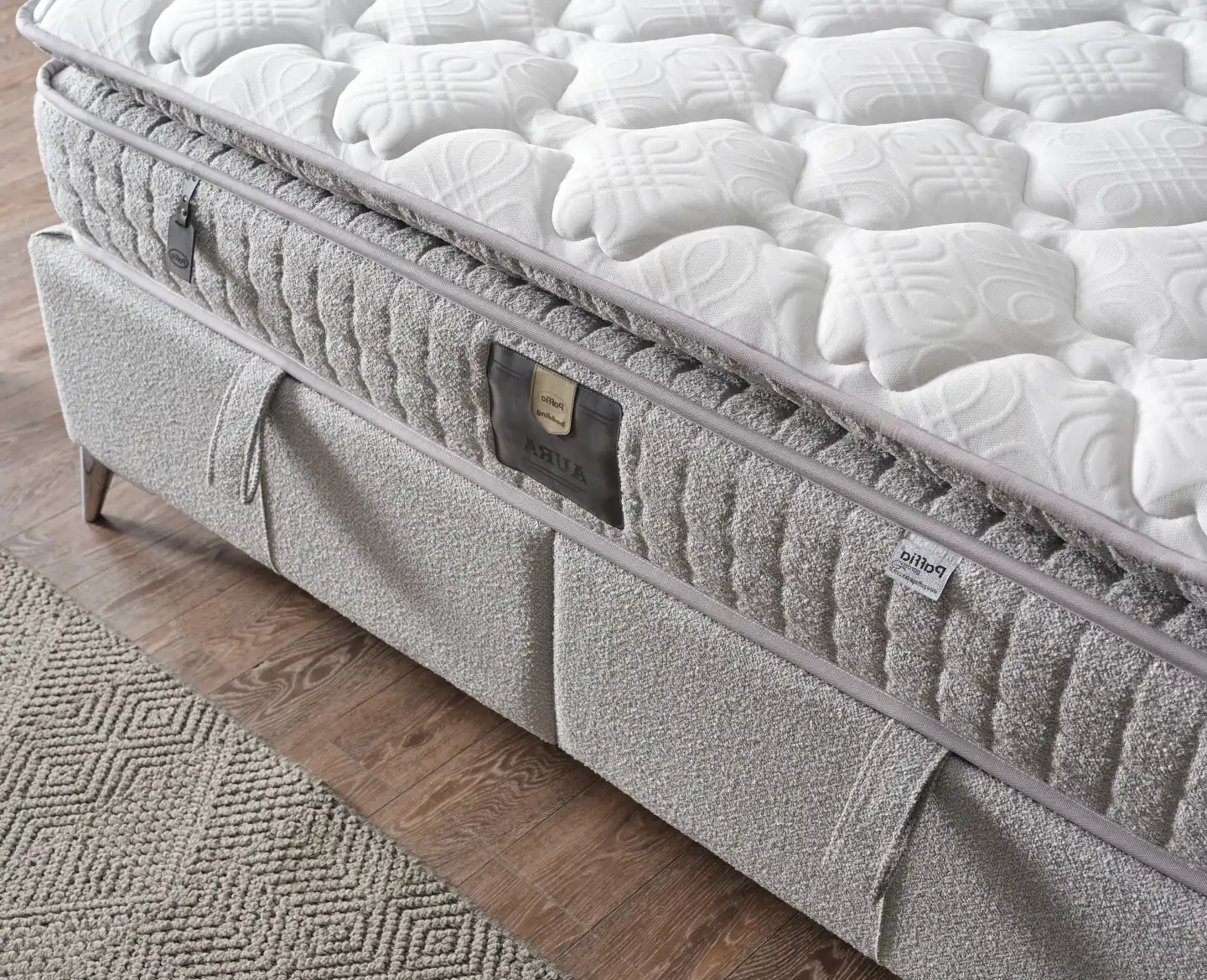 Herkül yay sistemine sahip Dolce Set sabit ped katmanıyla desteklenir. Bu set, yüksek uyku kalitesi ve omurga uyumu sunarak konforlu bir uyku deneyimi yaşamanıza yardımcı olur.