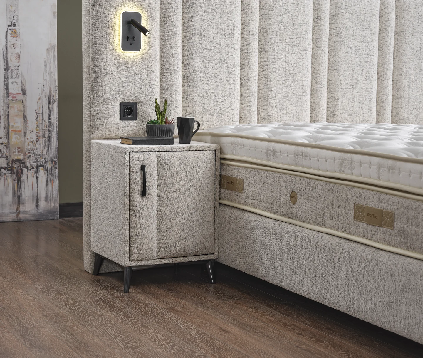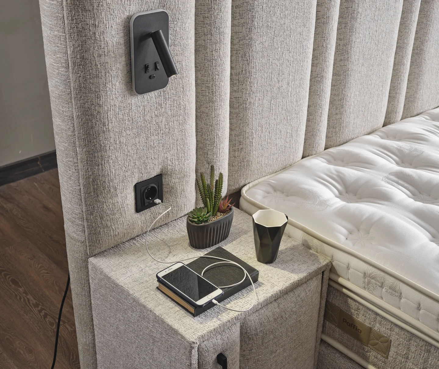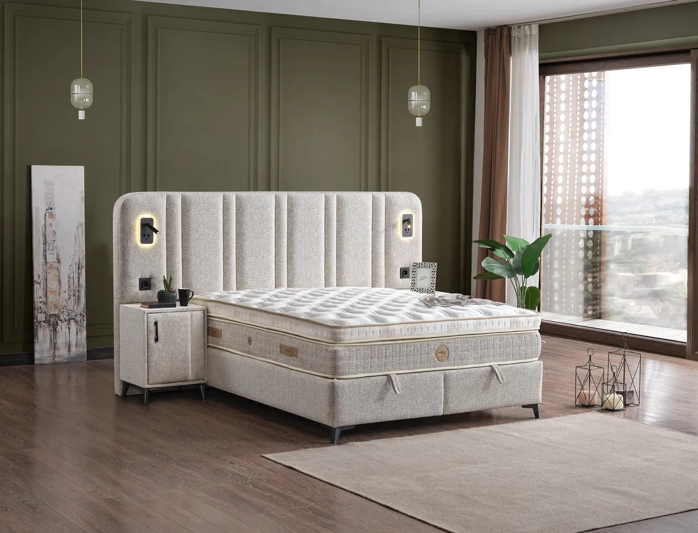 Hugga Set hayatınızı kolaylaştırmak için üretildi. Spor ve şık duruşunun yanu sıra okuma lambası, ambiyans ledi, başucu prizi ve USB şarj çıkış portu ile ihtiyacınız olan her şeyi bir arada sunuyor. Hugga yatakta bulunan Pocket Spring Yay Sistemi sayesinde sağlıklı bir uykunun kapılarını aralıyor.