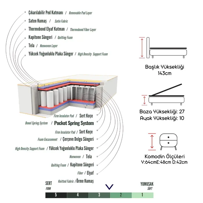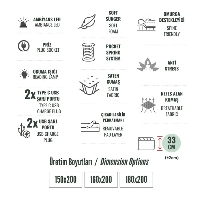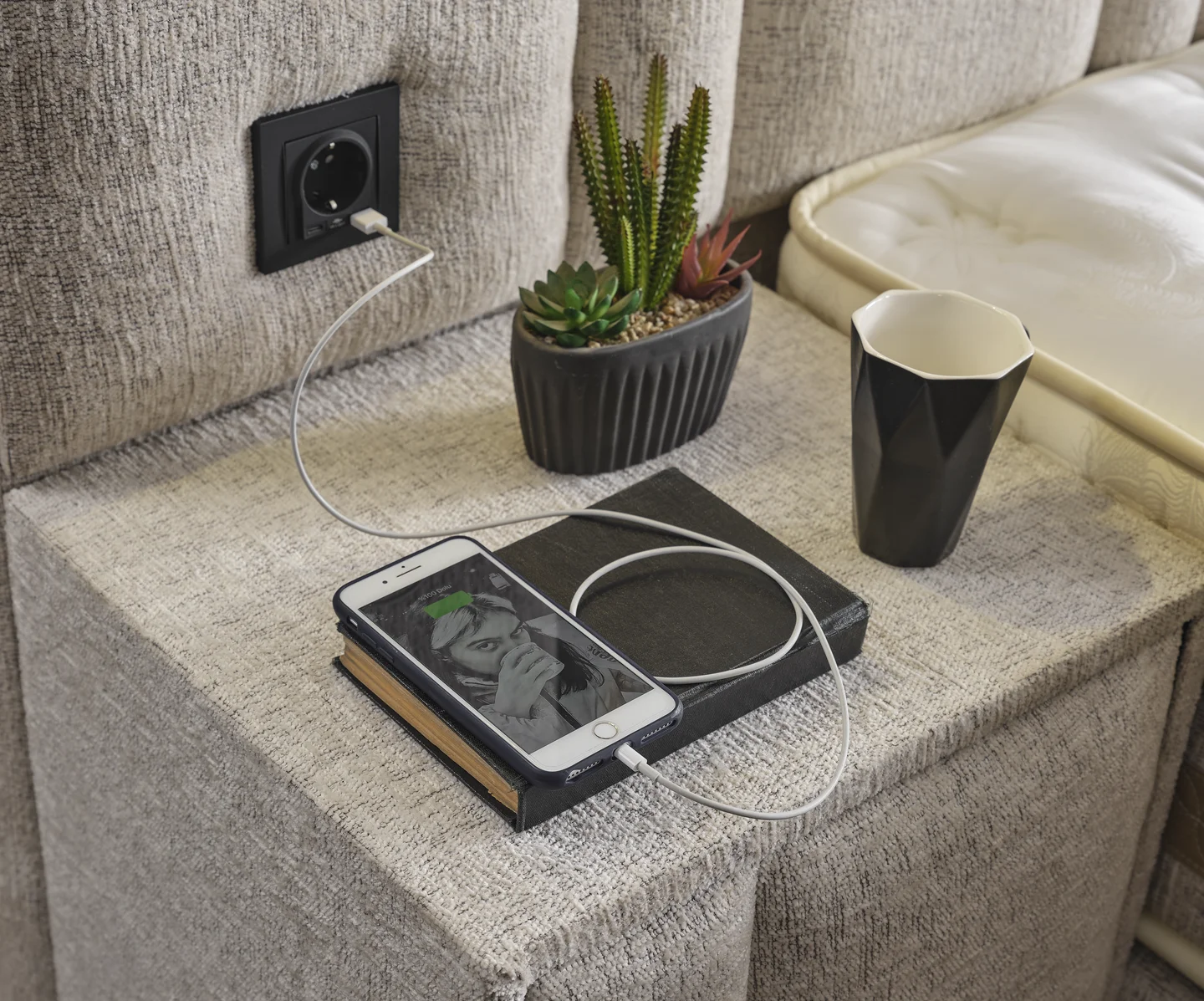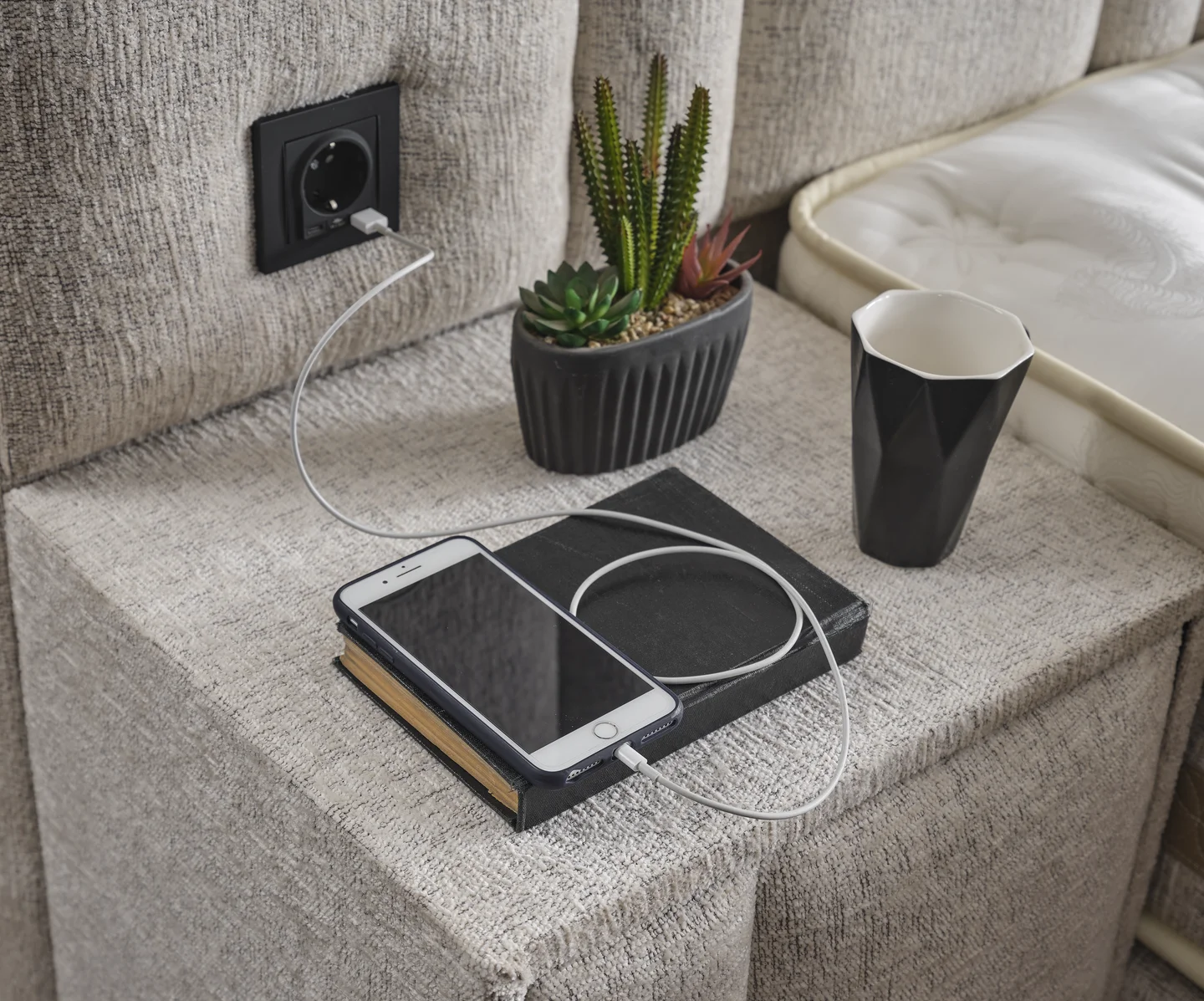 Hugga Set hayatınızı kolaylaştırmak için üretildi. Spor ve şık duruşunun yanu sıra okuma lambası, ambiyans ledi, başucu prizi ve USB şarj çıkış portu ile ihtiyacınız olan her şeyi bir arada sunuyor. Hugga yatakta bulunan Pocket Spring Yay Sistemi sayesinde sağlıklı bir uykunun kapılarını aralıyor.